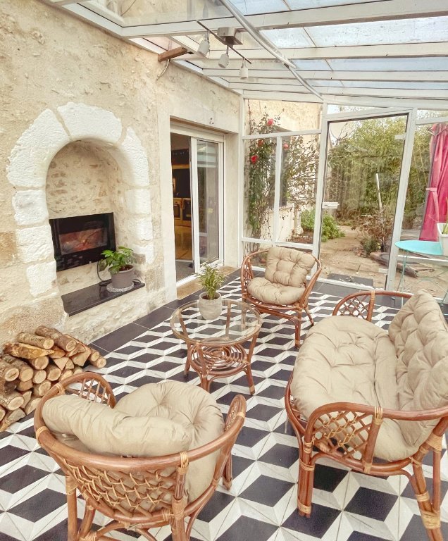 Ancienne bâtisse restaurée, lumineuse et soigneusement agencée, offrant un bel équilibre entre cachet et confort contemporain. Sur 237 m² habitables, l'espace de vie s'ouvre sur un séjour cathédrale de près de 78 m², baigné de lumière grâce à une hauteur sous plafond généreuse et des ouvertures en aluminium avec triple vitrage. La cuisine ouverte, équipée, prolonge naturellement le séjour pour créer un vaste volume de vie idéal pour recevoir. Un poêle Godin installé à l'entrée diffuse une chaleur d'appoint agréable et participe à l'ambiance chaleureuse des lieux.